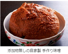 豆・麹・塩のみで仕込んだ自家製味噌、梅・塩・赤紫蘇だけで漬け込んだ梅干し。原材料だけで仕込み、添加物が全く入っていない 味噌と梅干は女将の自慢です。是非、季節ごとの旬な素材を使った料理の数々をお楽しみくださいませ。