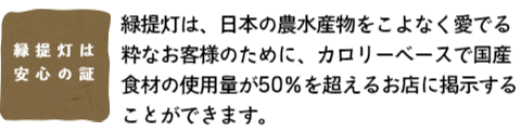 当店の緑提灯は国産食材の割合が80%を超える★4つ。