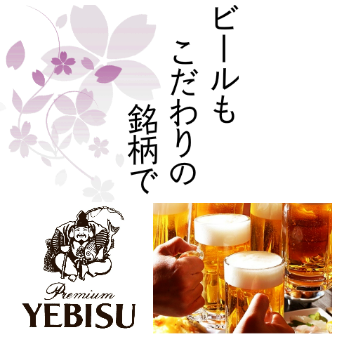 おいしさにこだわり、各社の生ビールを飲み比べてみましたが、当店ではサッポロビールの「エビスpremium樽生」をご用意させていただいております。