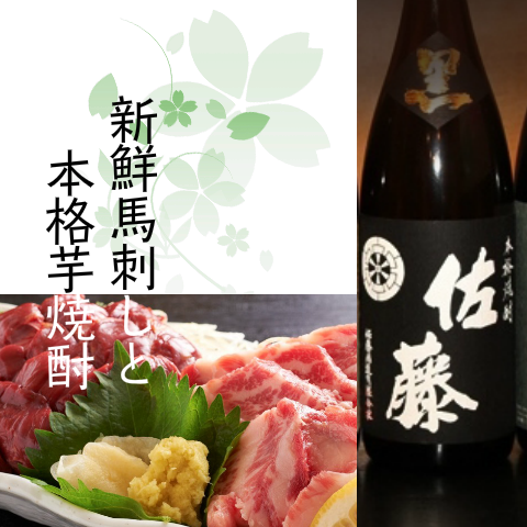 九州熊本から直送される新鮮な馬刺しと、鹿児島が誇る本格芋焼酎。